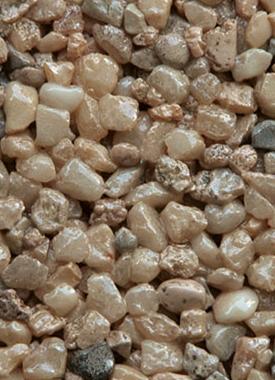 van de quartzkorrels. De meeste uitvoeringen gebeuren met korreldikte 2-3 mm of een combinatie